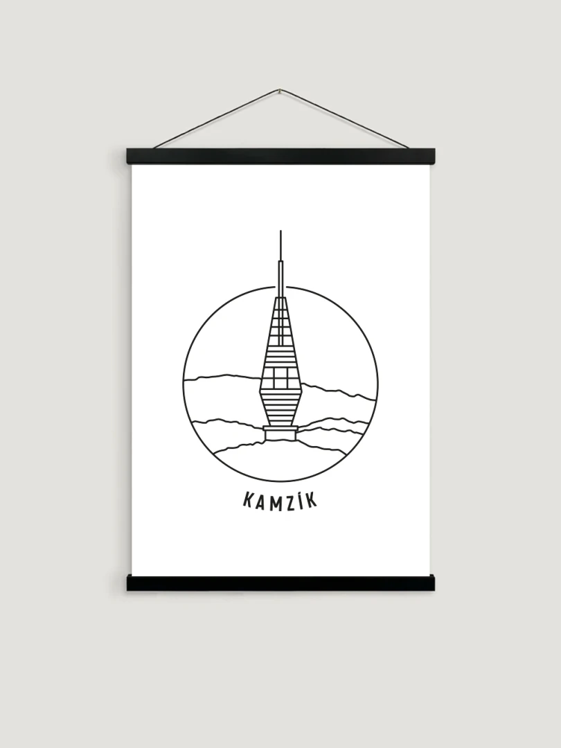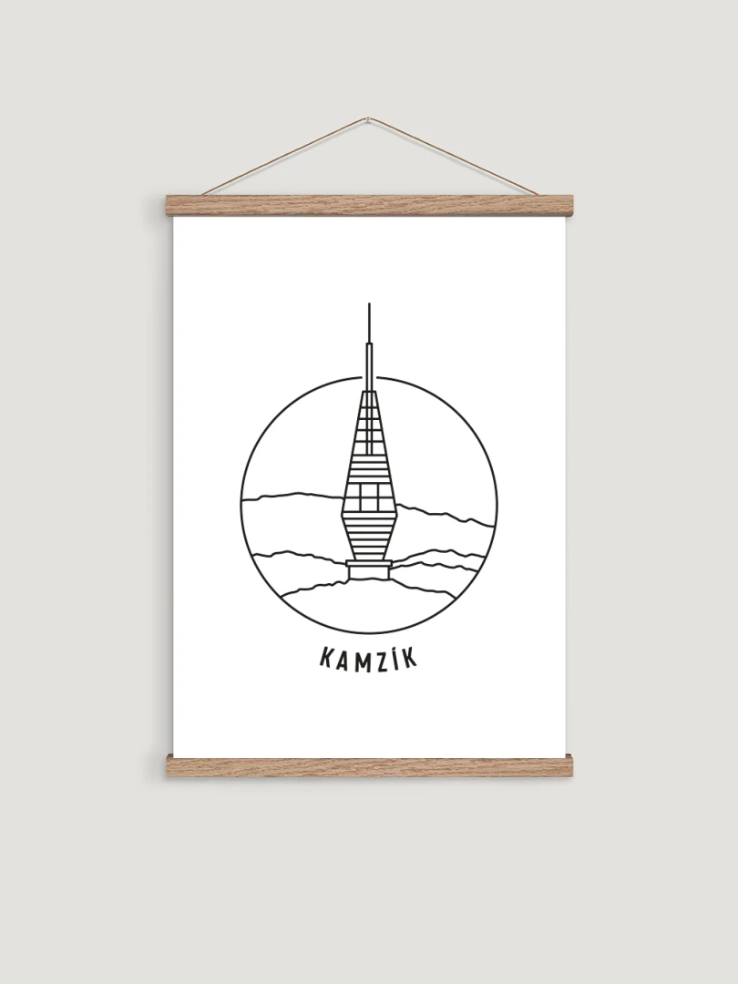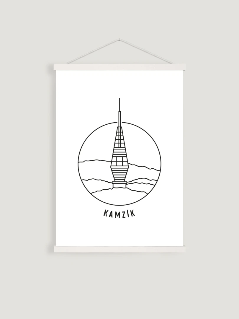 This piece captures the distinctive structure of the tower, set against the rolling hills that surround it, all enclosed within a simple circular border that focuses the viewer's attention on the iconic design.Whether for your home, office, or as a gift, this artwork brings a piece of Bratislava's contemporary architecture into any space in an understated yet striking manner.